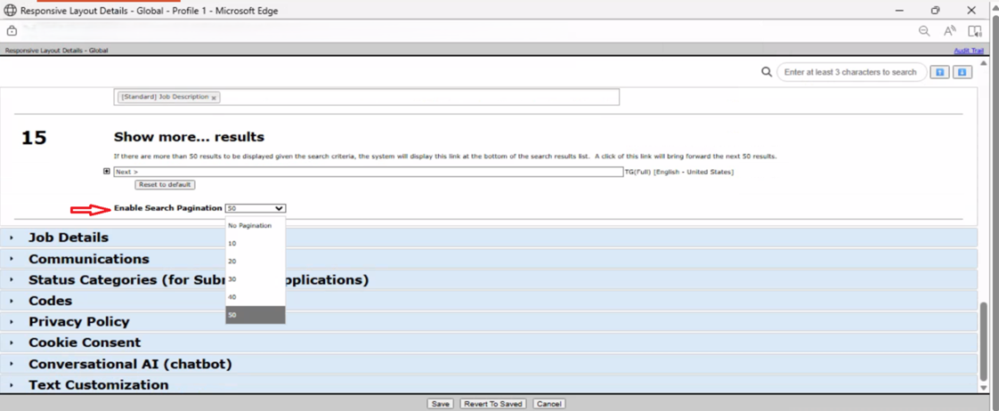 Path: Workbench >> Tools >> Talent Gateways >> Responsive Layout >> Search Results / Job Listing >> Under 15th section i.e., Show more…results >> Enable Search Pagination