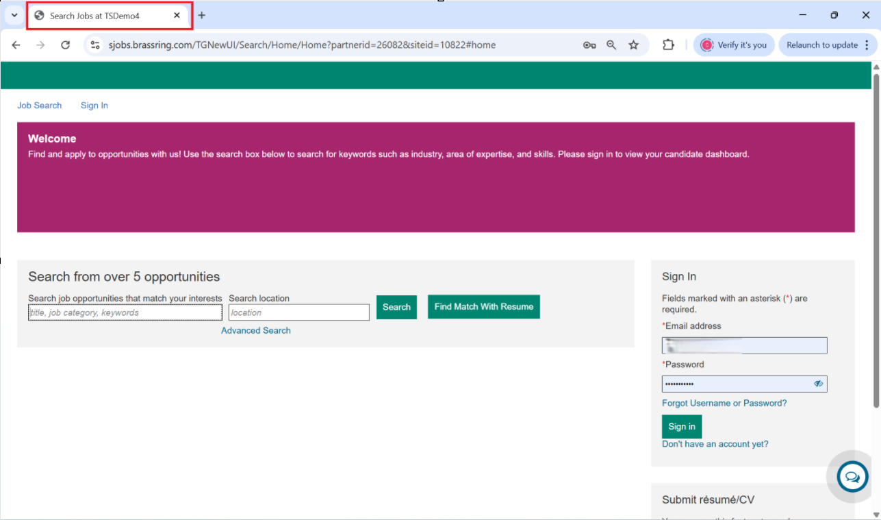 It has been noted that the browser previously labeled the talent gateway landing page as "Job Search Welcome” when accessing the talent gateway, which created confusion for screen-reader users.