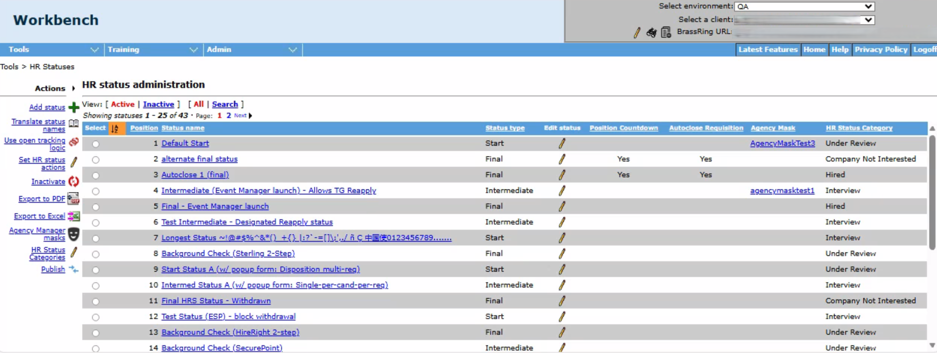 Starting with this release, the Talent Gateway Mask column/action has been removed from the Workbench UI in all locations where it was previously present. Talent Gateway Mask was removed because the HR Status Categories are now mapped and displayed for submitted applications on the Candidate’s Talent Gateway profile, which enhances the user experience and avoids confusion.