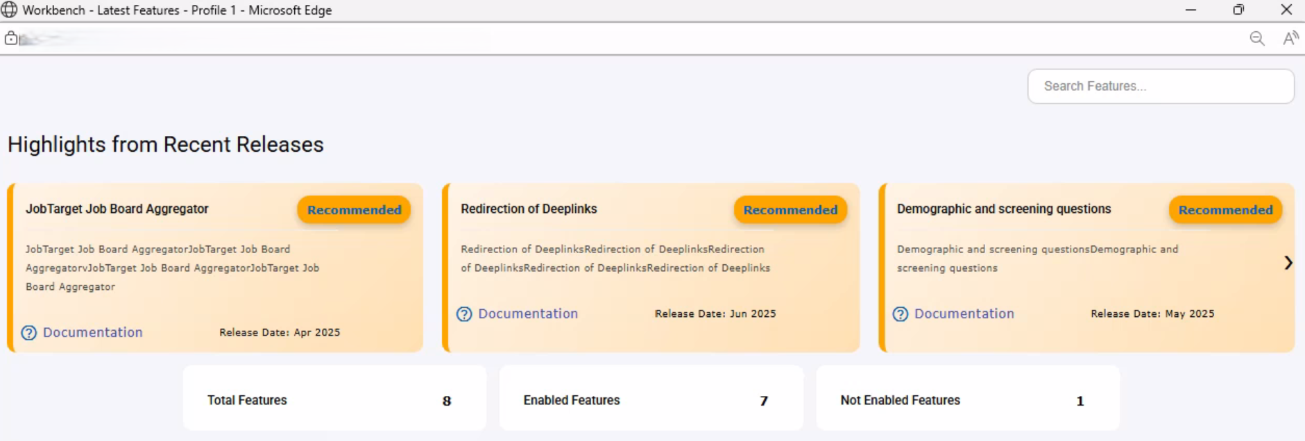 Starting with this release, Workbench users see a “Highlights from Recent Releases” section in the Latest Features window. The carousel in this section displays only those features that have not been enabled by the client, which are more than three months old and less than a year old.